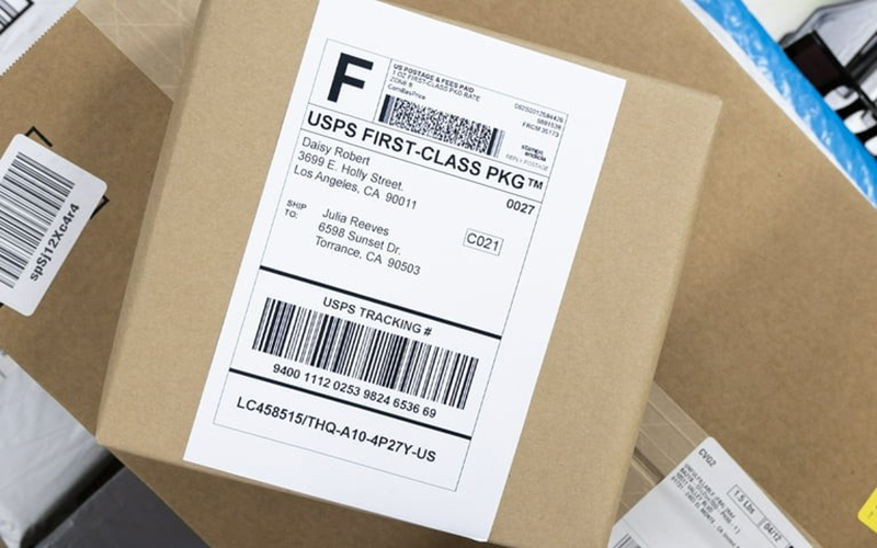 पते के लेबल, बारकोड लेबल और ट्रैकिंग लेबल जिन्हें टिकाऊपन और धब्बों से बचाव की आवश्यकता होती है।